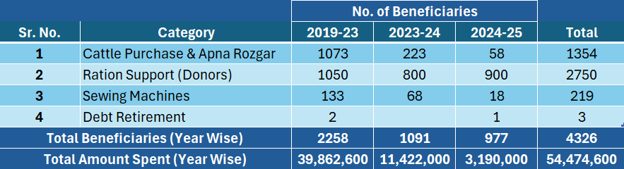 Enabling individuals to engage in work/business is integral to economic progress, extending beyond BAADBAAN. Offering farm cattle and startup funds cultivates self-reliance, stimulating entrepreneurship, and enriching local economies. This multifaceted approach accelerates holistic development, reinforcing the significance of personal empowerment in driving sustained economic growth.